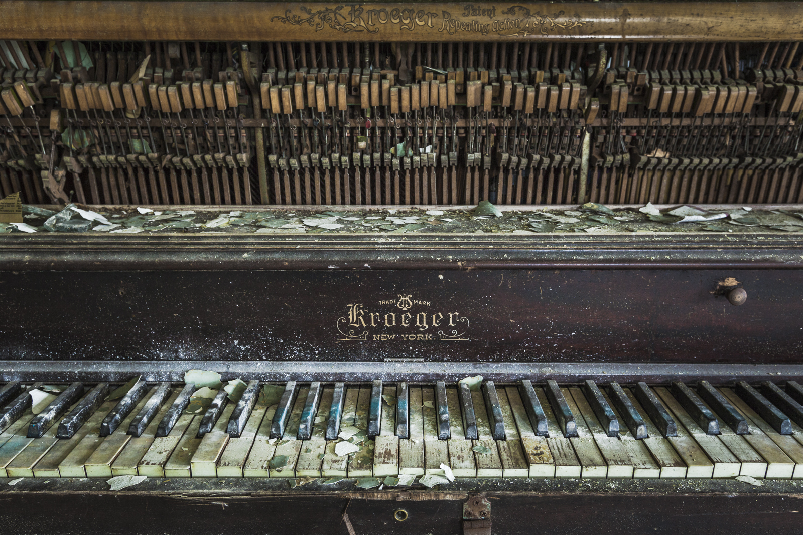 Several keys on this common room piano still functioned, though they had long gone out of tune.