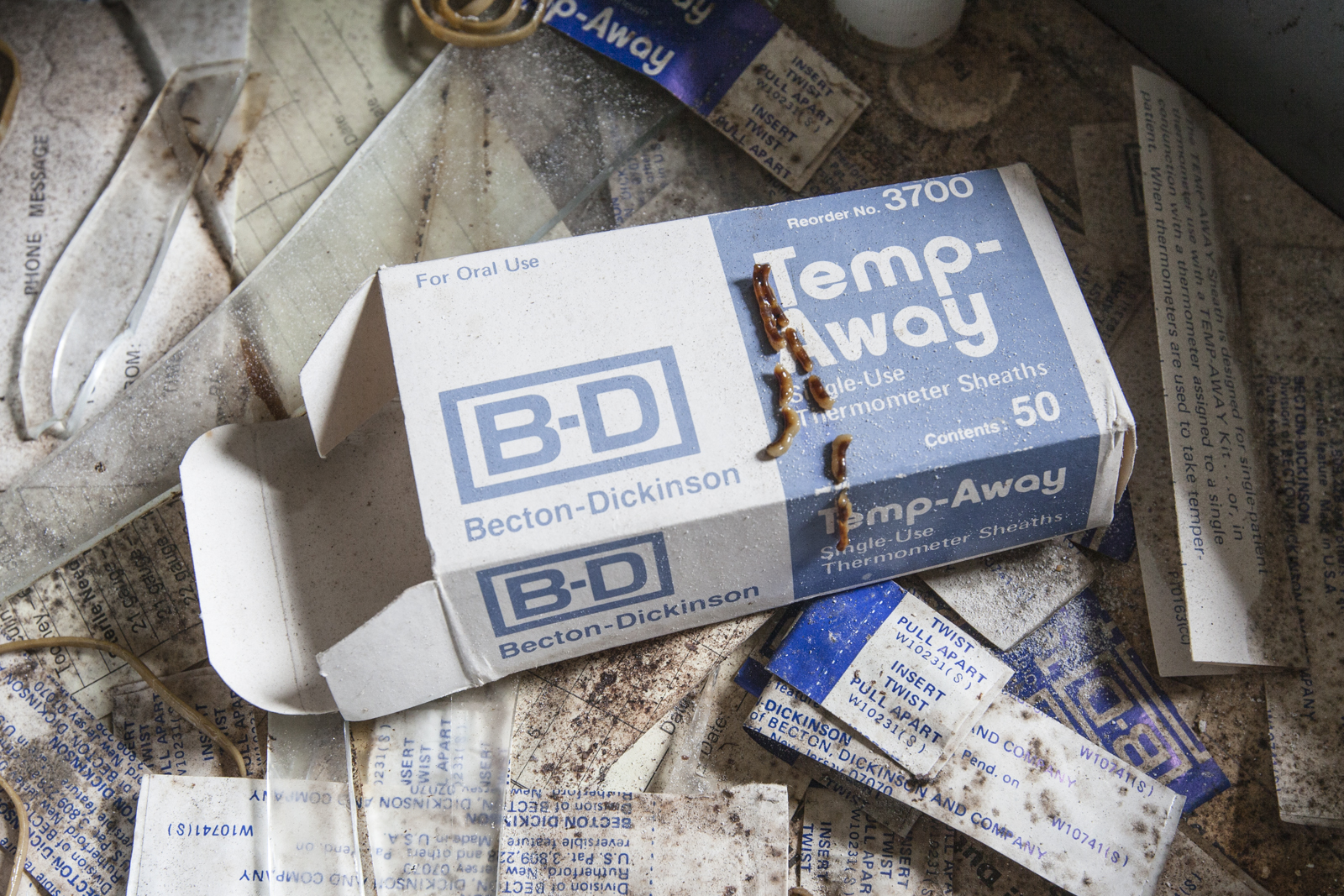 Can anyone name this species? A drawer of sanitary bandages and thermometer sheaths seemed an unlikely home for them.