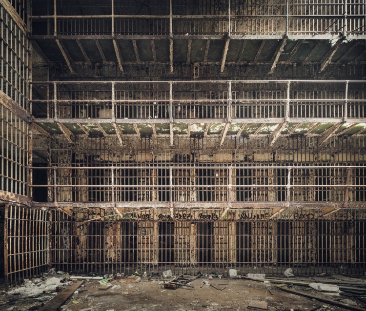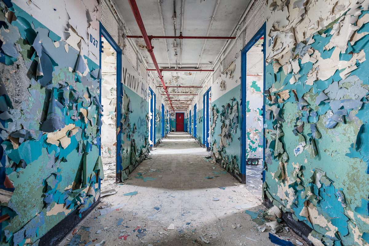 Many of the most remarkable abandoned buildings loom over their surroundings and dominate the landscape, but Newark’s Old Essex County Jail is barely there. Much of the structure is walled off behind a twelve foot barrier, and all that rises above it is difficult to discern through the overgrowth. On the grounds, the building remains obfuscated, half in ruins and only visible in parts, with an absence of any unifying architectural feature. Inside, its footprint is no less disorienting, resulting from a series of haphazard additions made at the turn of the 20th century as the jail’s population increased. Unlike the comforting symmetry of asylum wards, the whole disordered mass seems to be governed by a bizarre dream logic, made all the more sinister by the fact that you can’t look the building in the face.